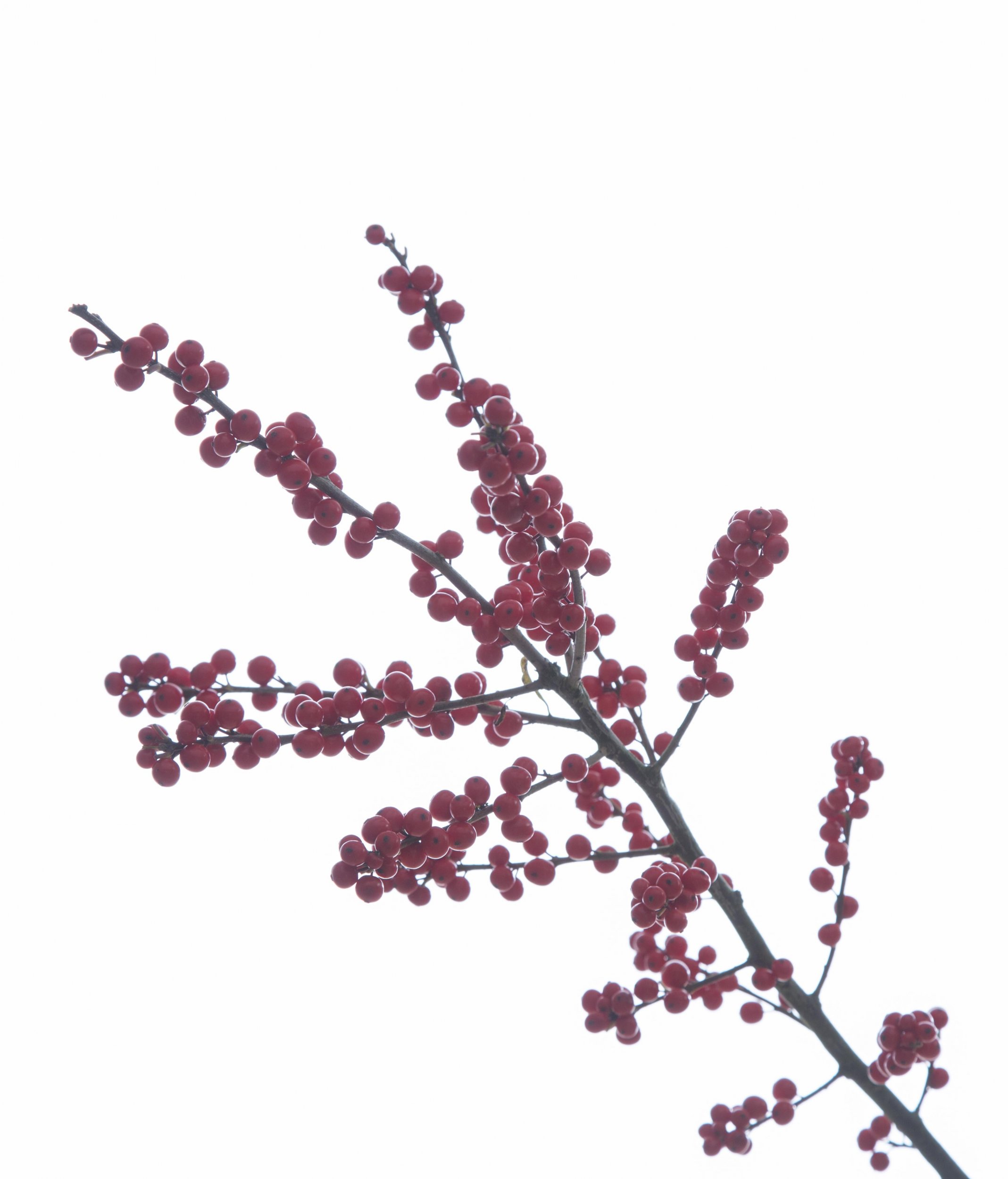 Aan het eind van het herfstseizoen laat de struik zijn blad vallen en komen de rode bessen mooi tevoorschijn.