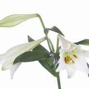The most traditional group is the Lilium Longiflorum group with coarser foliage and a trumpet-shaped flower. Most cultivars are white, but there are also red and white cultivars. Longiflorum, which means ‘with long flowers’, has a light scent. The LA group was created by crossing two different groups. This group has pale pastel shades, a more compact branch structure, coarser foliage and stamens which shed.