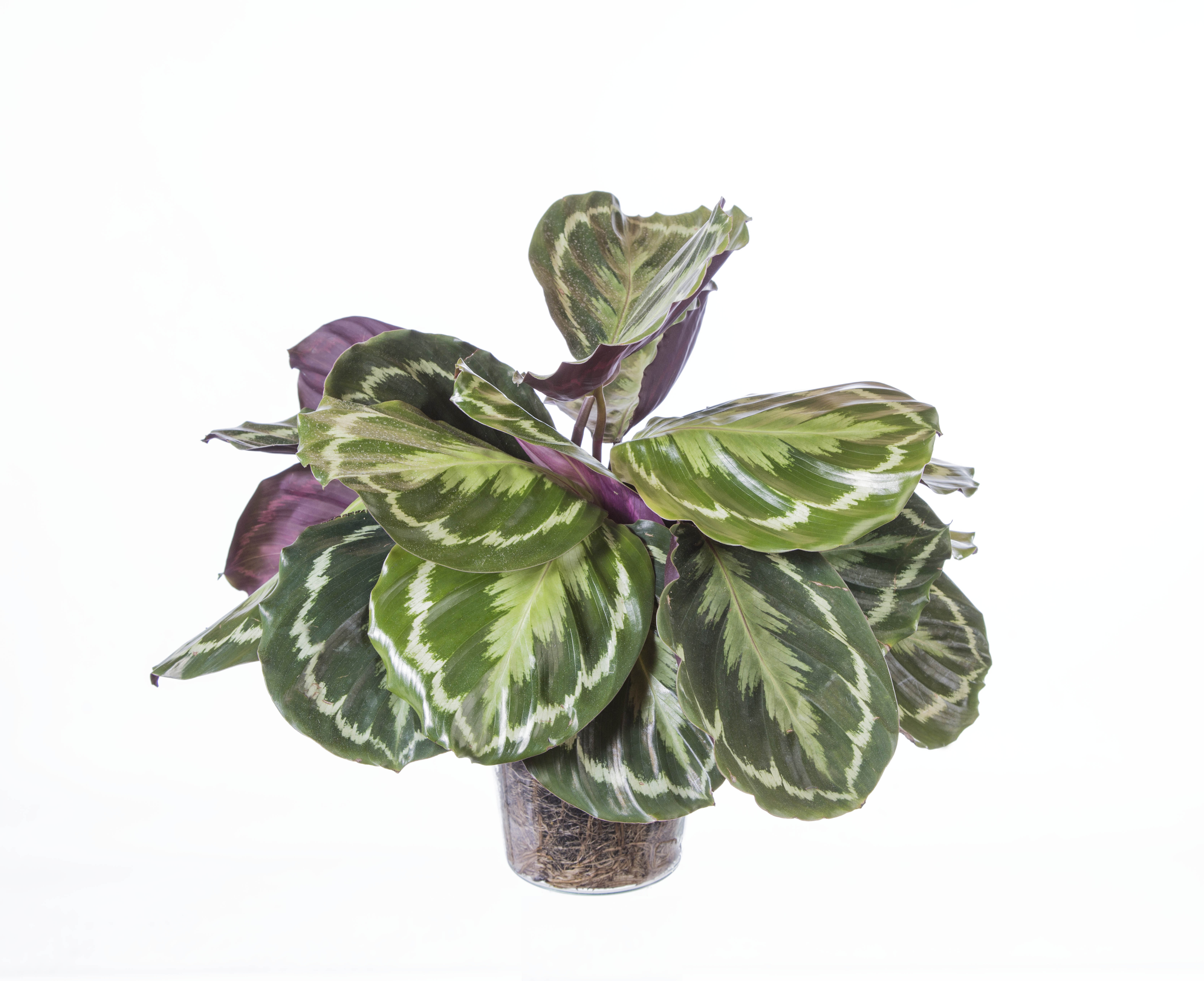 De Calathea is een grappige plant die s'avonds zijn bladeren oprolt en s' ochtends als de dag begint zijn bladeren uitrolt om het licht te vangen. om deze reden wordt de Calathea ook wel de 'living plant' genoemd.