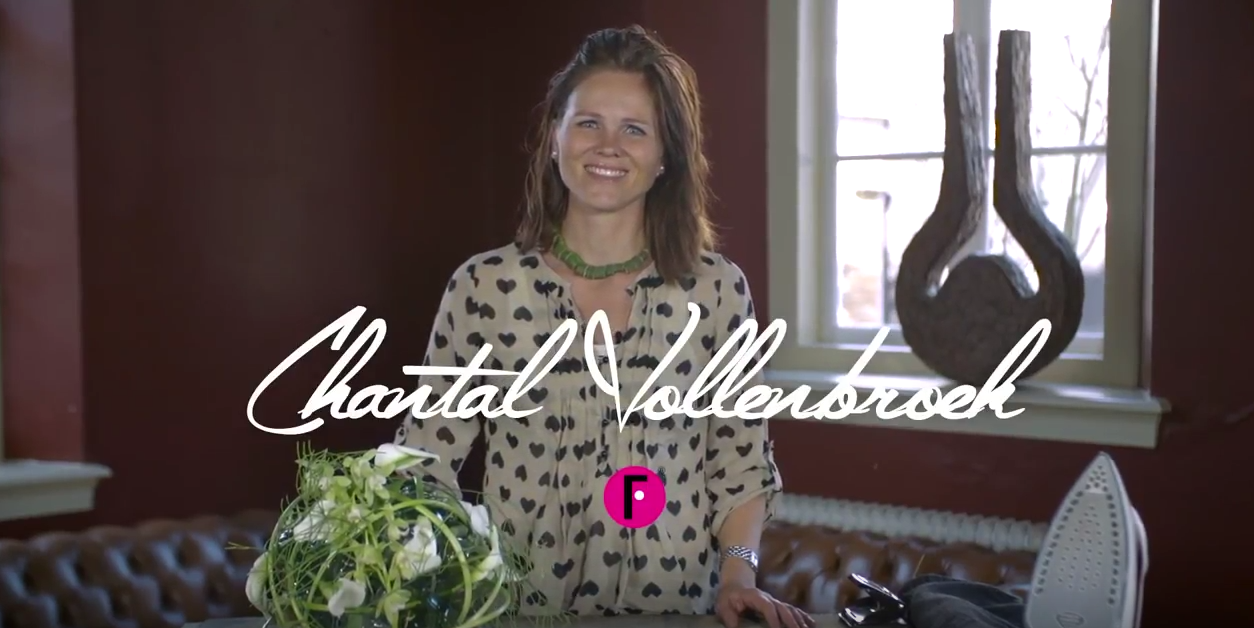 Dutch florist Chantal Vollenbroek loves recycling and shows you a fun way to reuse a plastic bottle. She turns it into an original base for a green and white flower arrangement with Callas, Cymbidium and Thypa leaves.