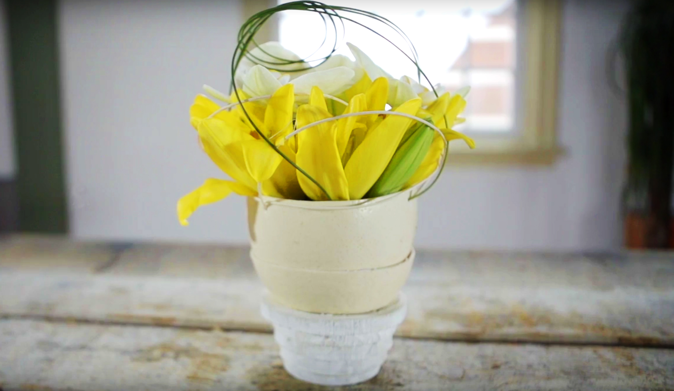 Simple and elegant design with an ostrich egg, lilies and orchids. Lovely Easter flower arrangement.