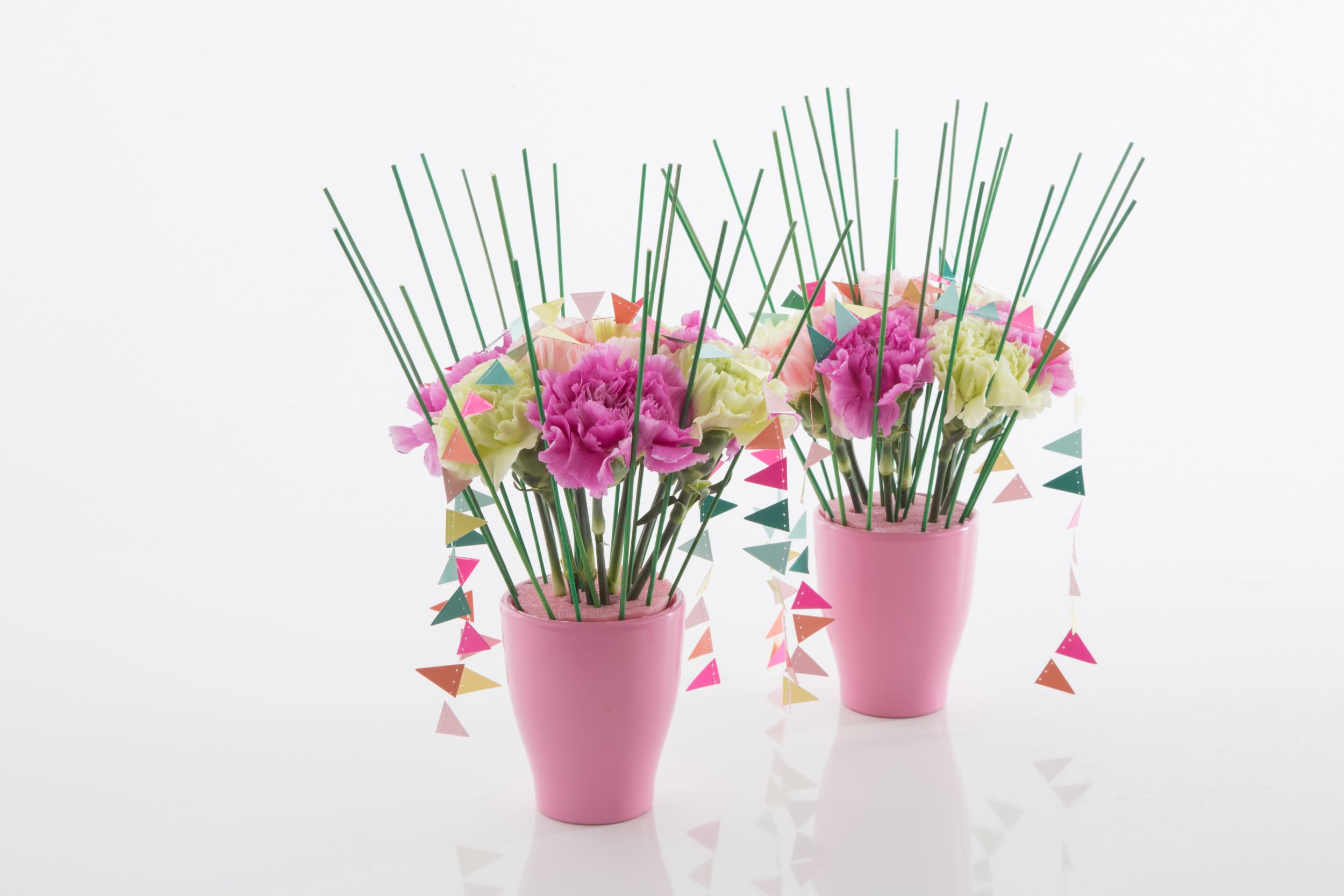 Alex Segura Arana shared a fun design idea with carnations during the live stream on Facebook. How festive is that? Lovely bright colours and cute details. Easy to make and it will put a big smile on everyone's face! The smaller versions are made with pink Oasis Rainbow Floral Foam which gives a fun detail.