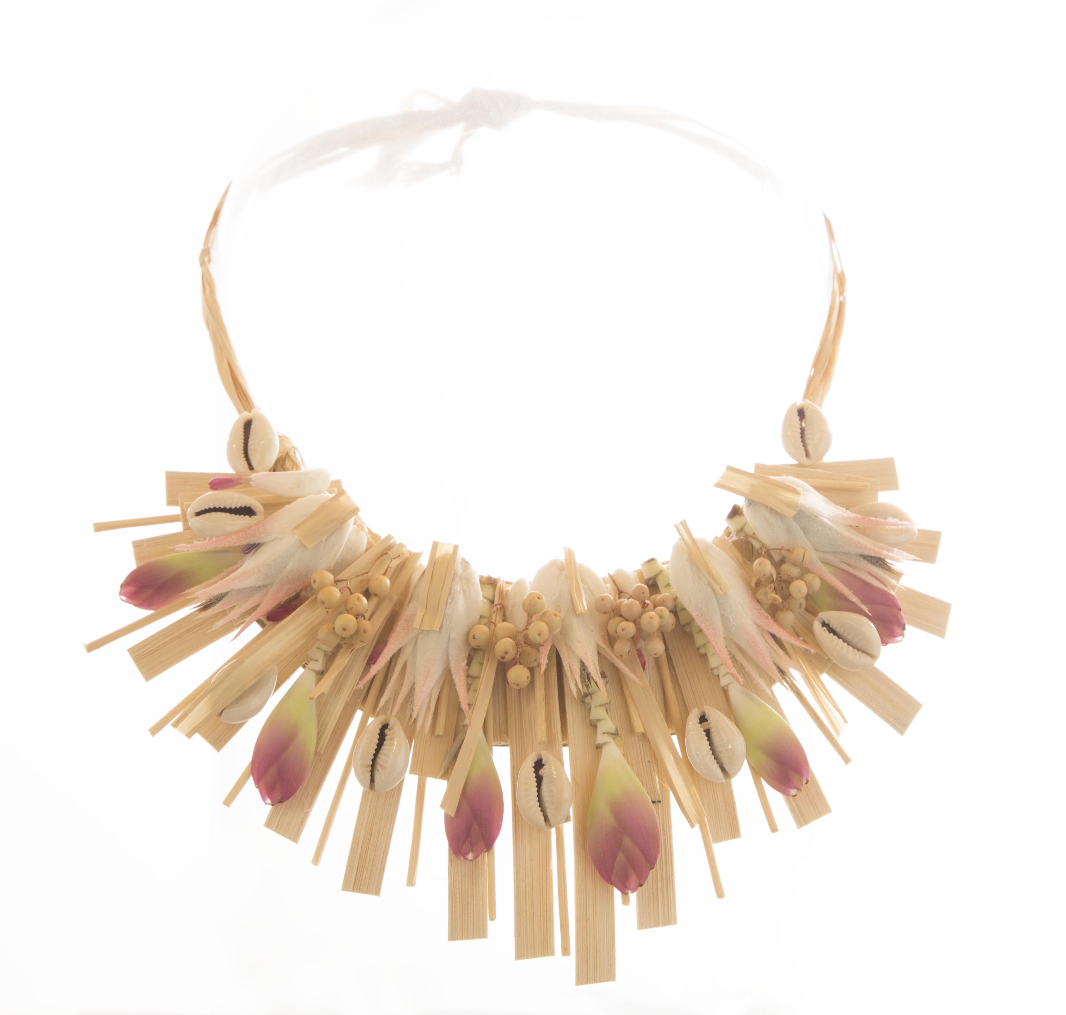 Roos van Unen used pieces of Tillandsia and Achmea Primera flowers in this floral jewelry. Would be great to wear with a summery dress!