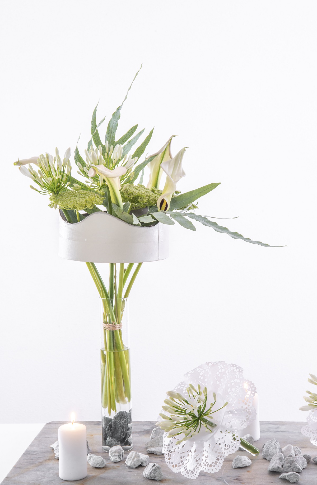 A hatbox and some Biedermeier cuffs are turned into festive floral table decorations. Pim van den Akker shows you how easy and fun it is to work with ready-made floristry articles from Dillewijn Zwapak. Just use your imagination and think of original ways to use products like these!