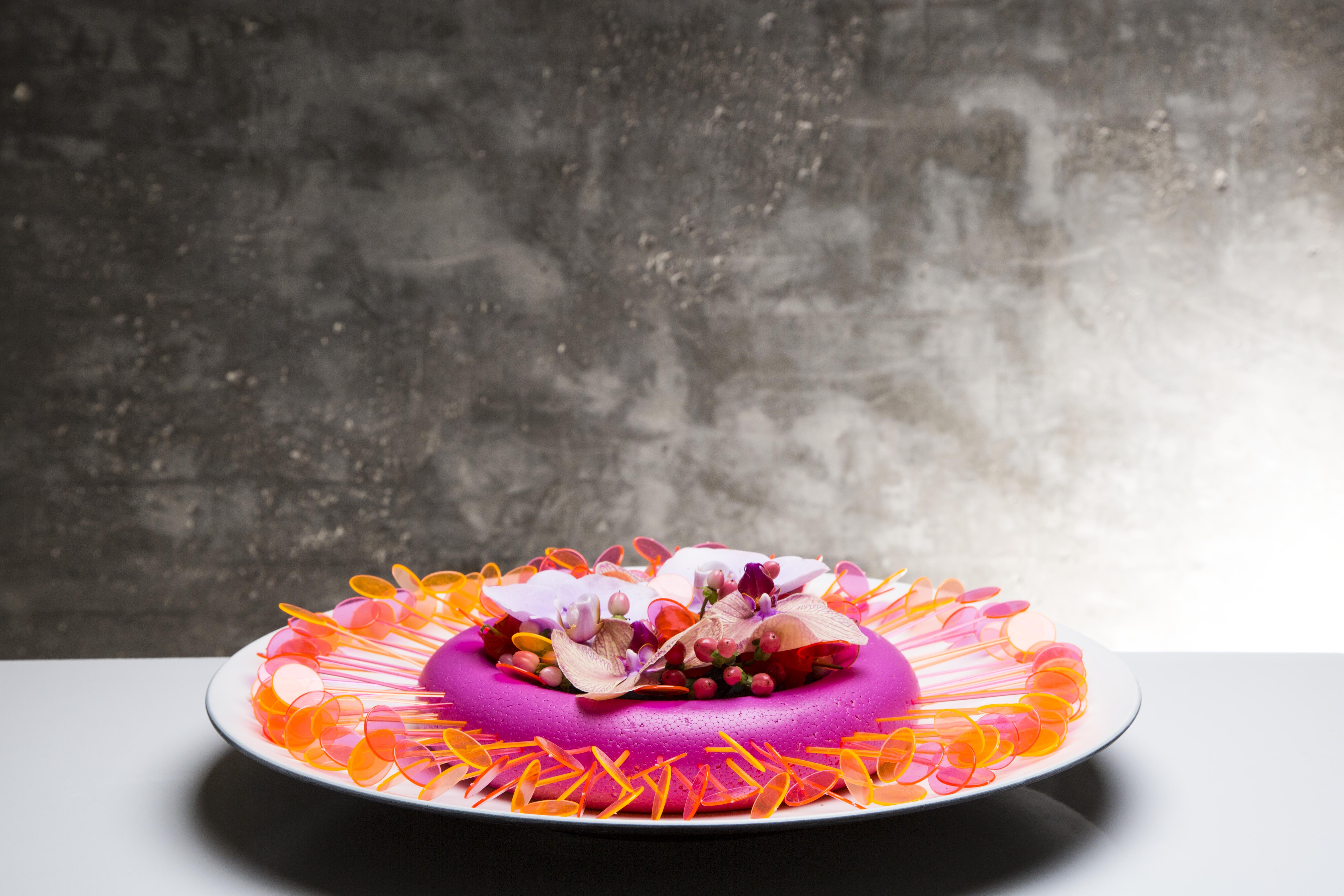 Unusual materials like these cocktail sticks Alex Segura used in this design hopefully makes you smile! It is fun, different and easy. And with just a few flowers like these phalaenopsis, physalis and hypericum not too expensive.