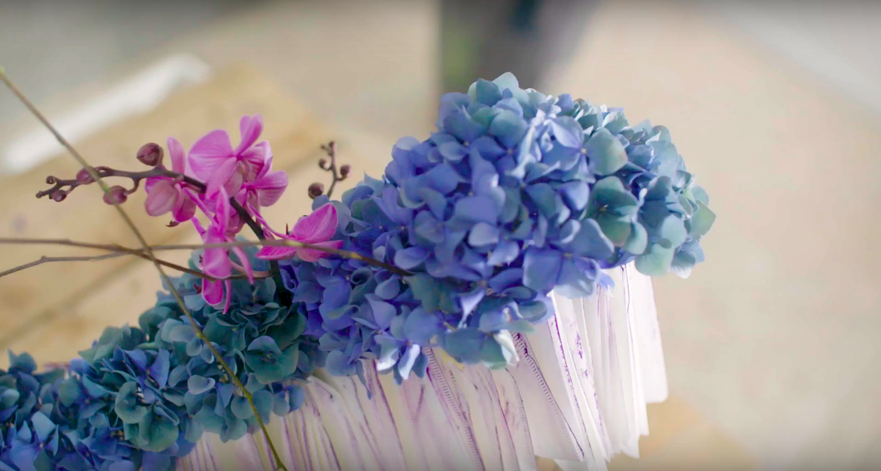 Stunning signature arrangement by Frédéric Dupré with Hydrangea classics 'Pimpernel'. All you need is a few modest materials, some DIY skills, gorgeous and strong Hydrangeas and a bit of time to create this 'piece de resistance'. He'll talk you through the steps and if you don't speak French; ENGLISH SUBTITLES ARE AVAILABLE!