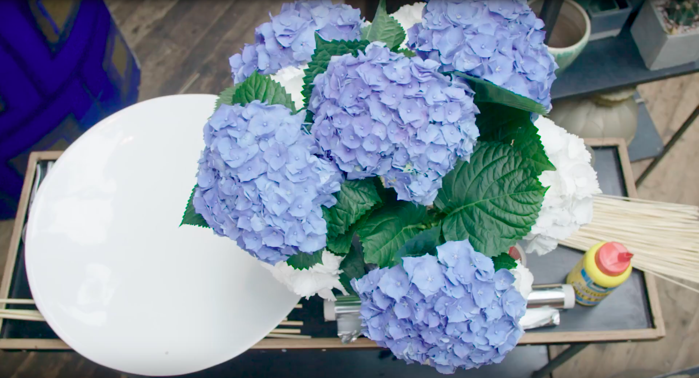 Pim van den Akker shares a bouquet idea with stunning blue and white Hydrangeas. These beautiful flowers are a real treat. If you care for them correctly, they'll reward you by staying fresh for a much longer time. Pim will give you a few care tips and shows you a fun technique: how to quickly create a frame out of dozens of wooden sticks.