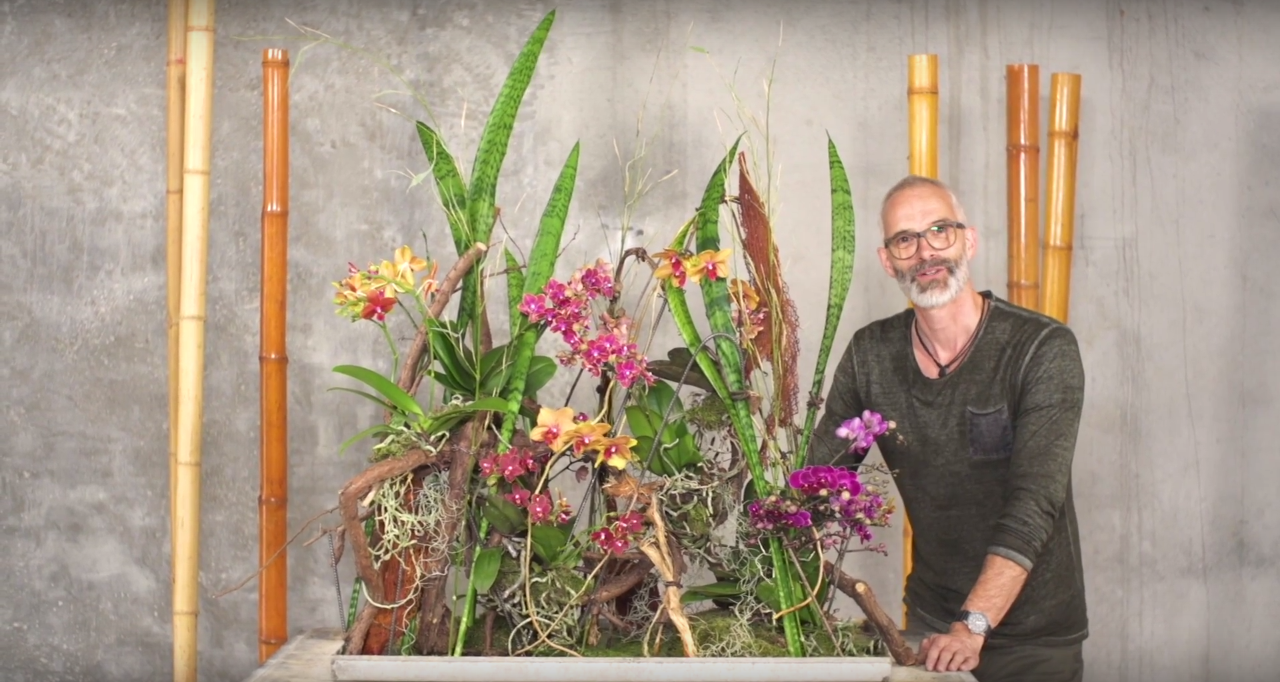 Klaus Wagener, German floral designer and founder of the publishing company BLOOM’s, created a design for International Orchid Day 2016. His mysterious 'Secret Orchid Garden' is a lush plant arrangement with different varieties of beautiful Phalaenopsis. An original and playful design with surprising techniques and different material usage. Enjoy!
