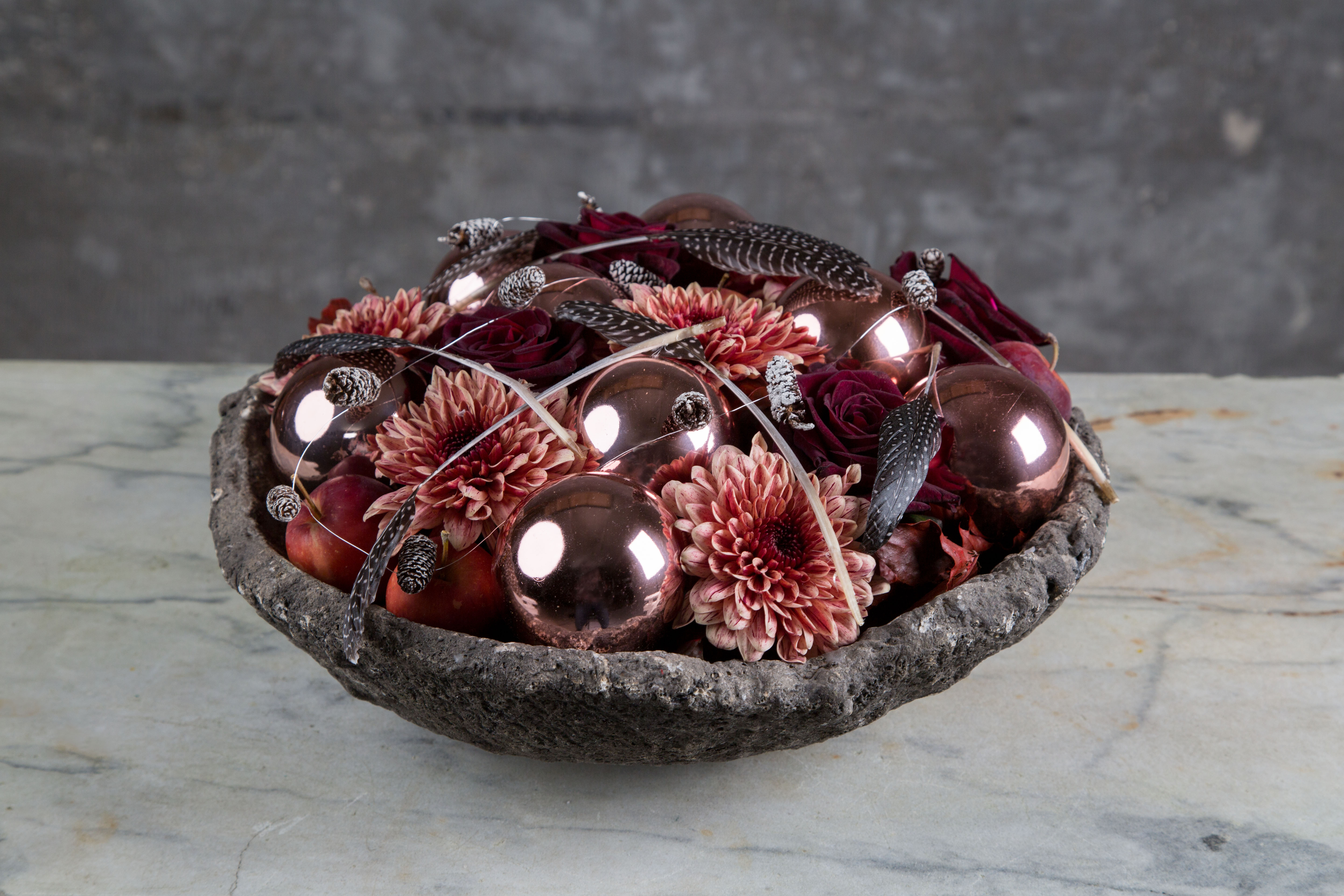 This colour combination is stunning, a bit different than most Christmas designs but no less beautiful! Kristel van Dijk used 'Pip Salmon' Chrysanthemums and combined it with deep red Black Baccara® roses.