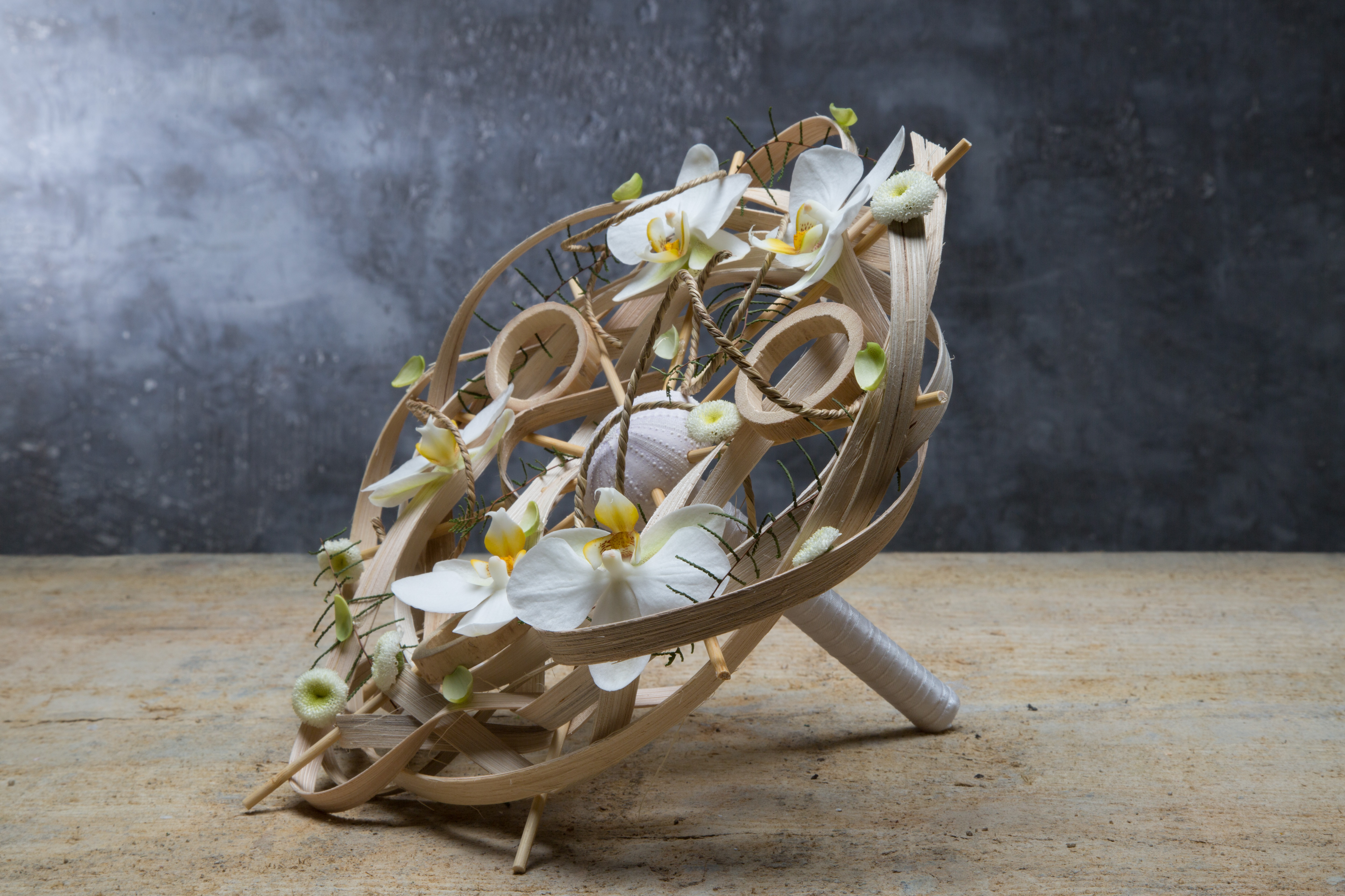 This bridal design is made in only 15 minutes! Looks quite impressive, right? With an sea urchin shell as a base, a few sticks and some wood fineer can you make this base.