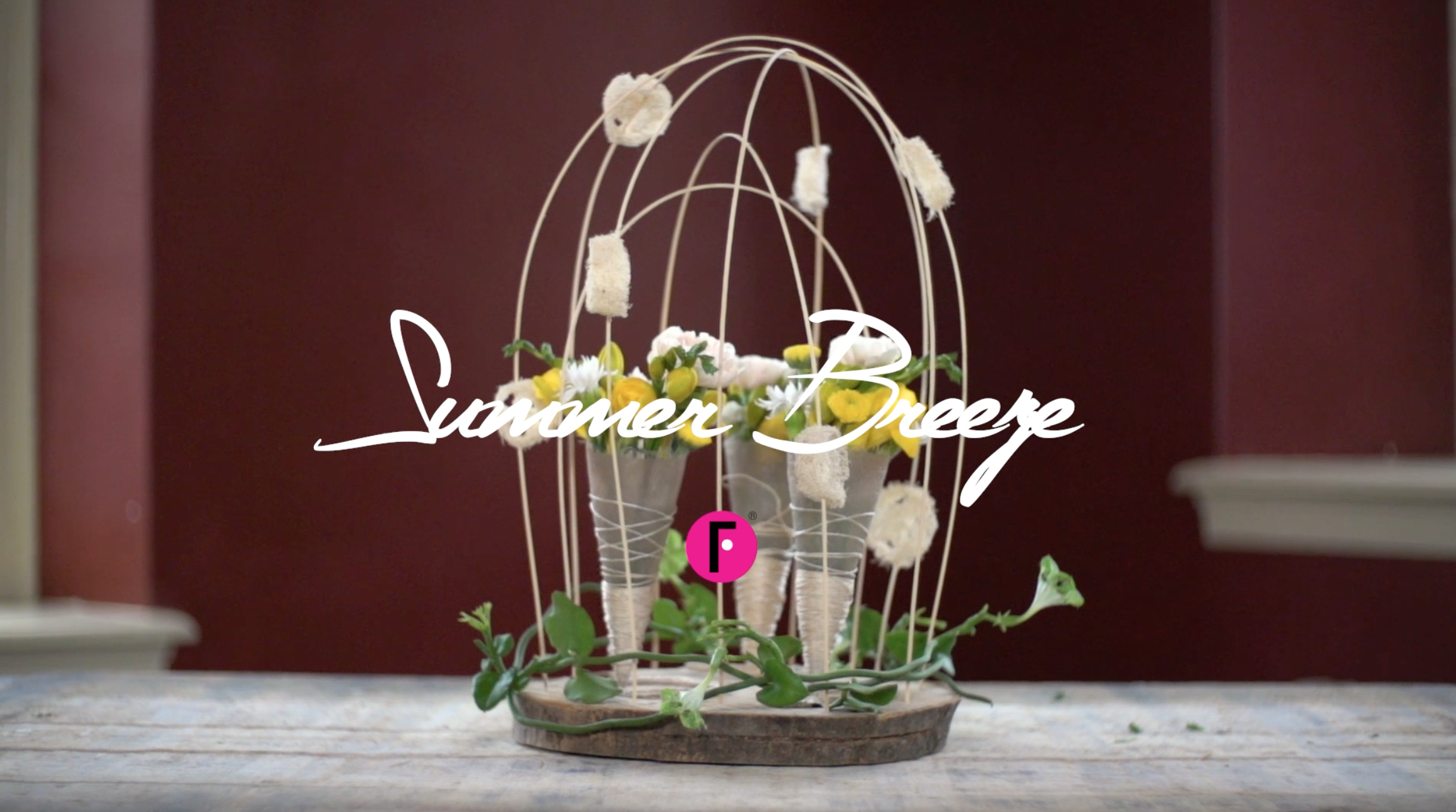 A very romantic design by Jantine van bruggen Floral Designer. She used different materials like Chrysanthemums "Limoncello', Ceropegia African Fountain, Freesia 'Soleil', birch trunk and wicker.