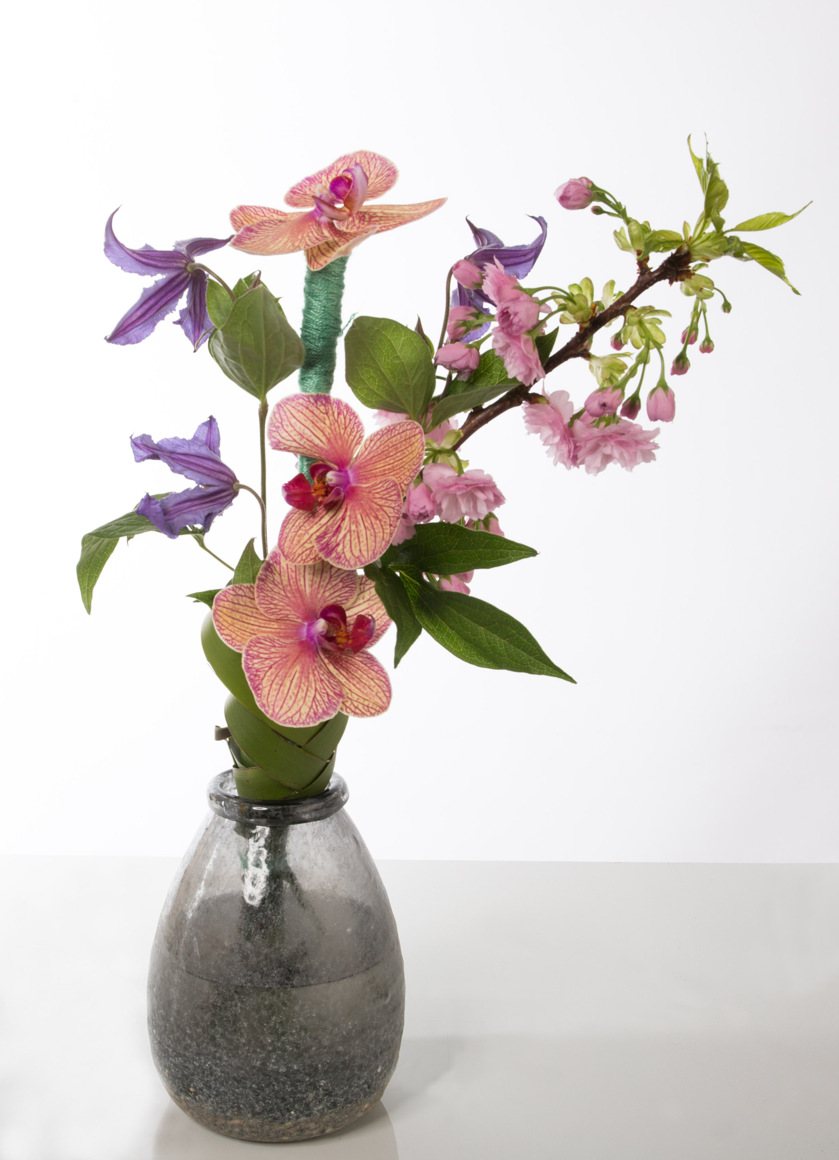 Kleine vaasjes doen het altijd goed! Geef je bloemen iets extra's met wat gevlochten Tiva gras als halsje!