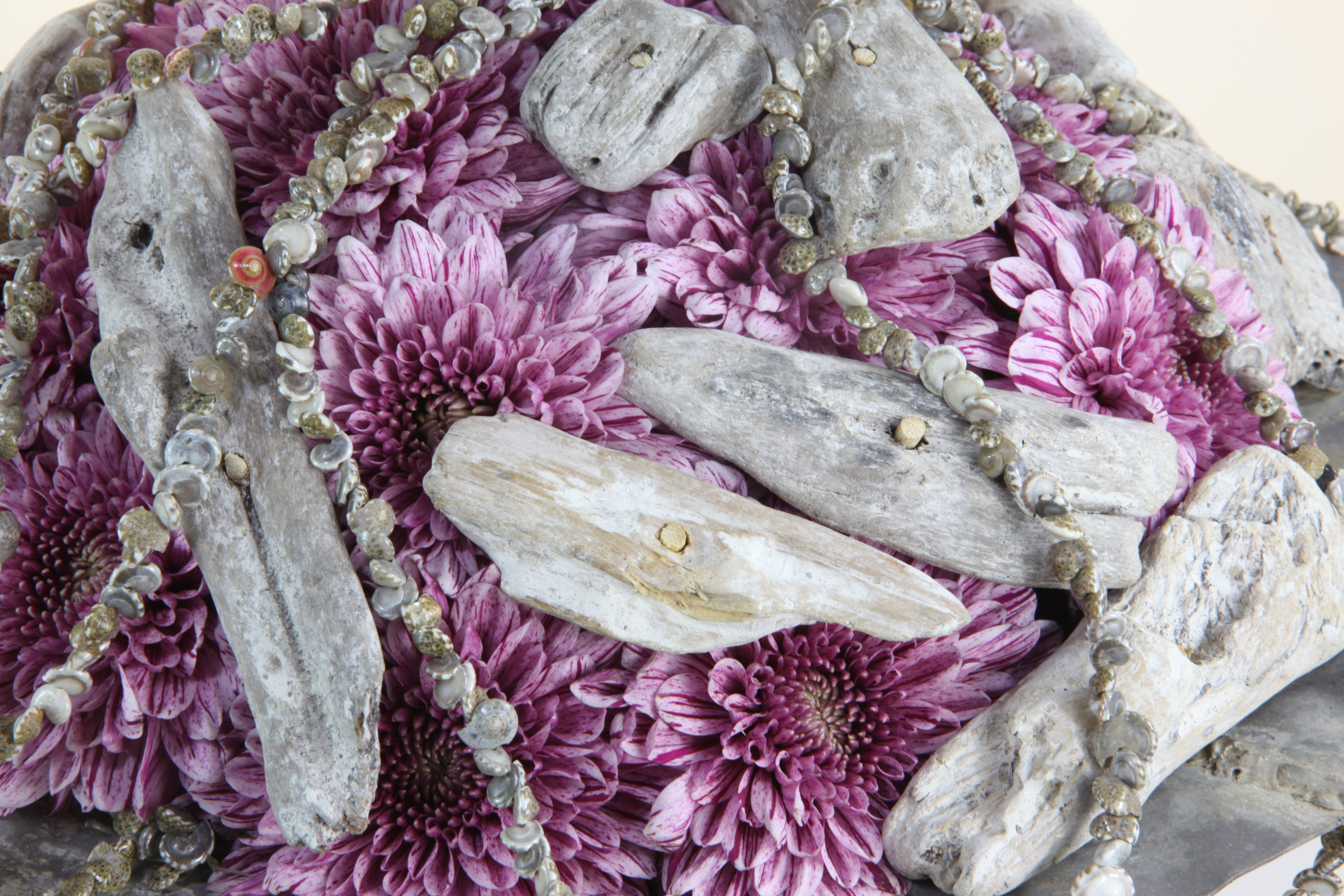 A close up to show how the pieces of bleached wreck wood really make the beautiful Stellini Chrysantemum pop.