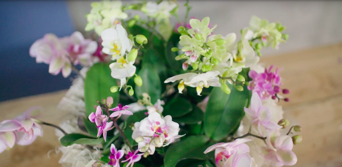 Idee voor een prachtige schaal vol weelderig bloeiende Phalaenopsis orchideeën. Een enkele orchidee is prachtig op zichzelf maar een aantal bij elkaar geplaatst geeft je arrangement direct een rijk gevoel. Nelleke Bontje laat haar versie zien en deelt een aantal leuke ideeën!