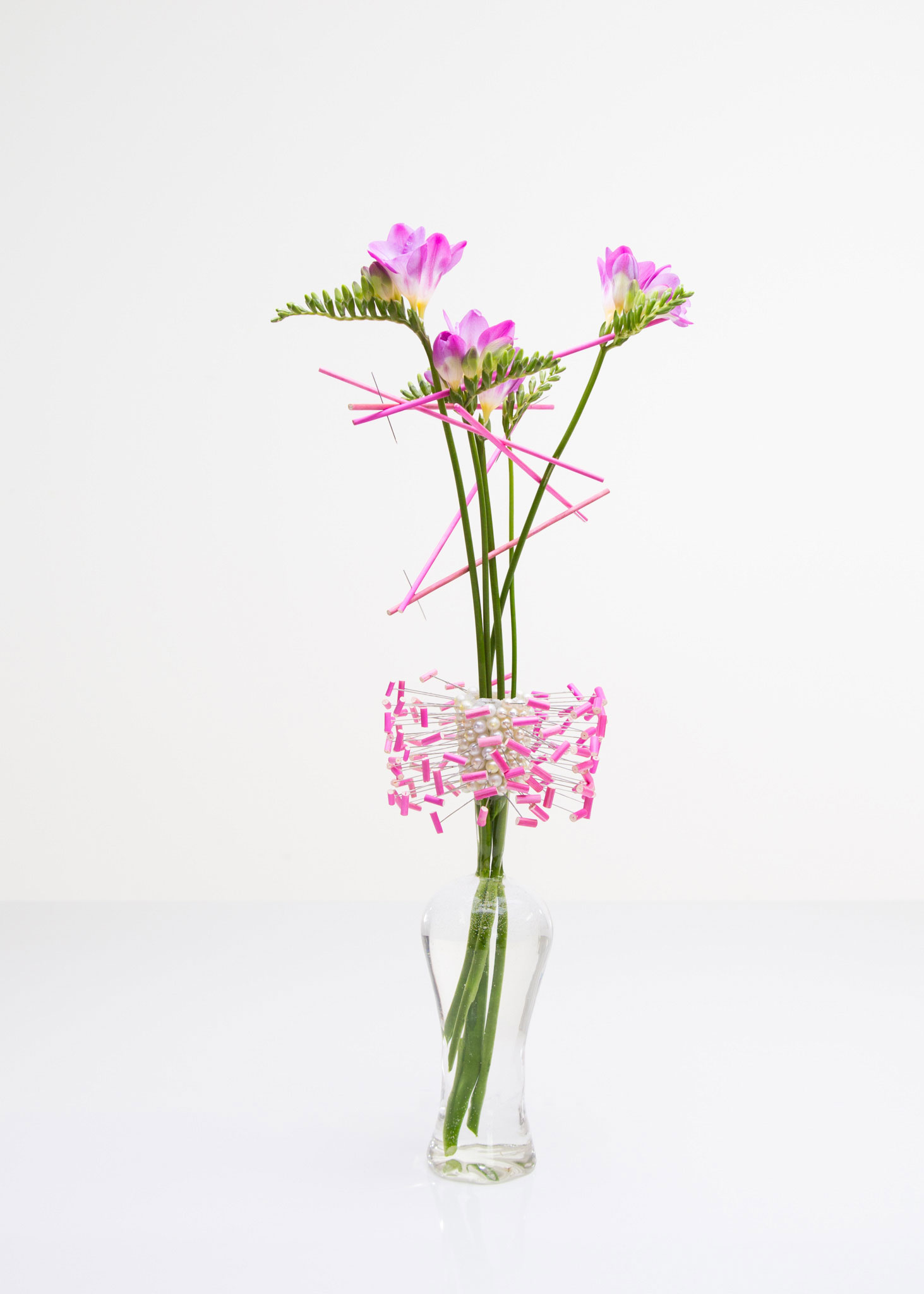 Drie takken Freesia's, aangekleed met 'parels', voor een super chique uitstraling!
