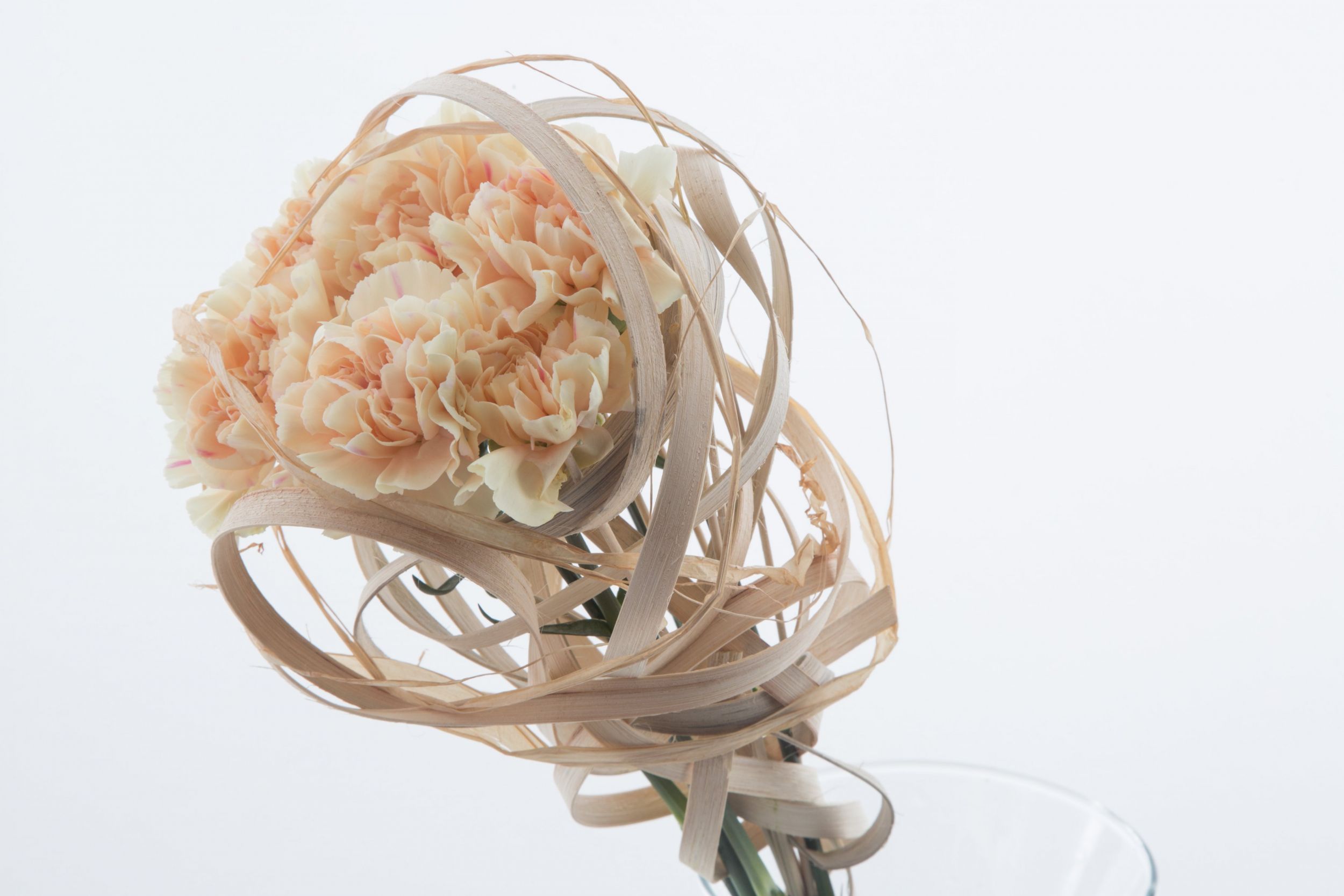 Pim van den Akker deelt een makkelijk en simpel idee om de Trendy Dianthus in de spotlights te zetten. Met pitriet heeft hij een bundel gemaakt waar hij met fineer er doorheen heeft geweven. Hierdoor ontstond een open omhulsel om de anjer in te stoppen. Het is een makkelijk, maar leuk design.