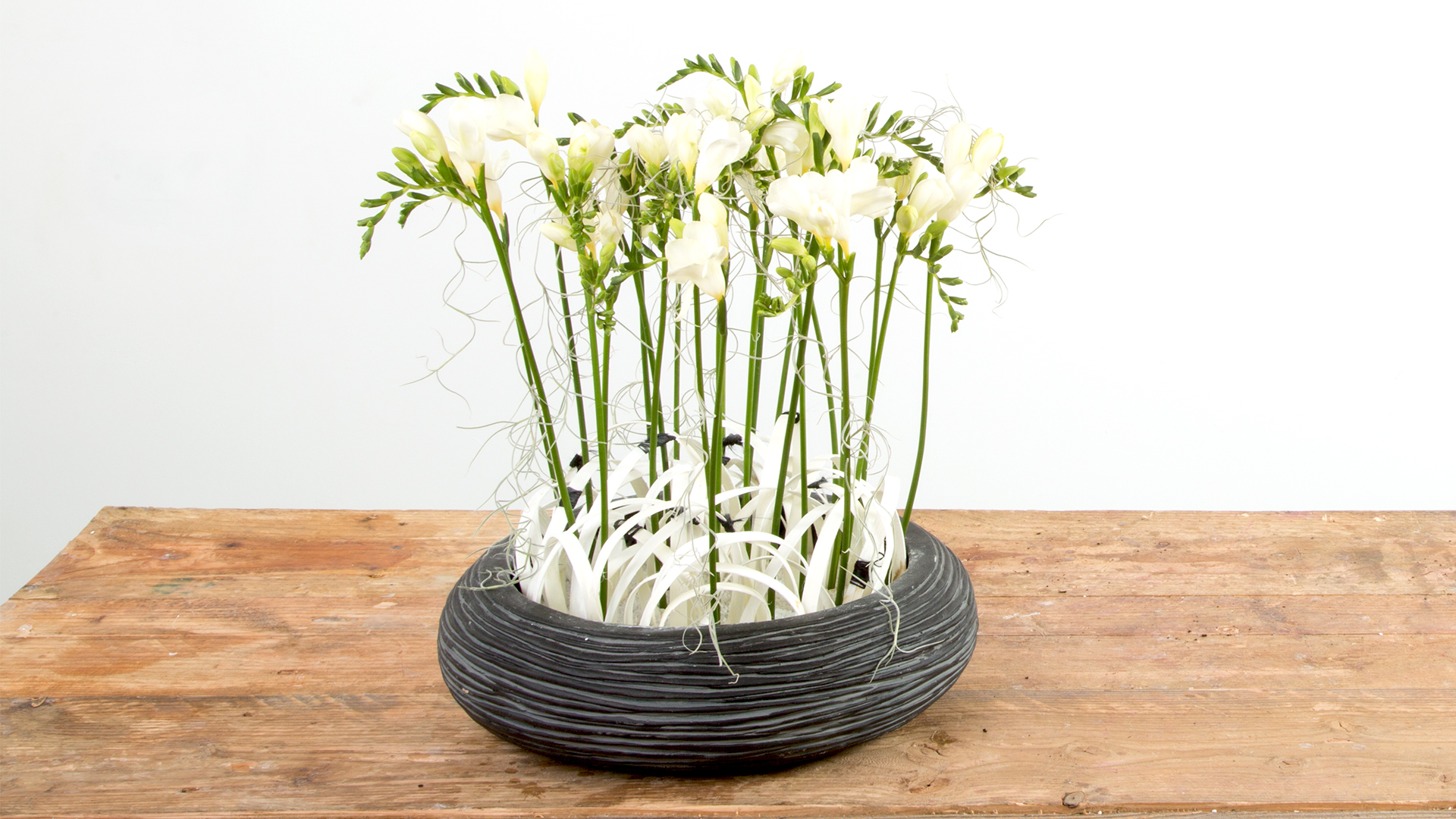 Nelleke Bontje ontwerpt een uniek Freesia arrangement. Op deze manier krijgen Freesia's een totaal andere invulling.