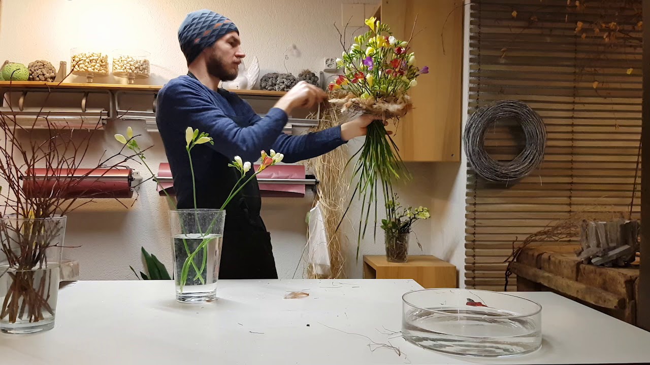 A playful #FreestyleFreesia design by Swiss floral designer Tobias Kopp from Flora-Line. He creates a bird's nest base, adds some fun feathers and of course a lot of brightly-coloured Freesia. A wonderfully fragrant and colourful #FreestyleFreesia spring arrangement!