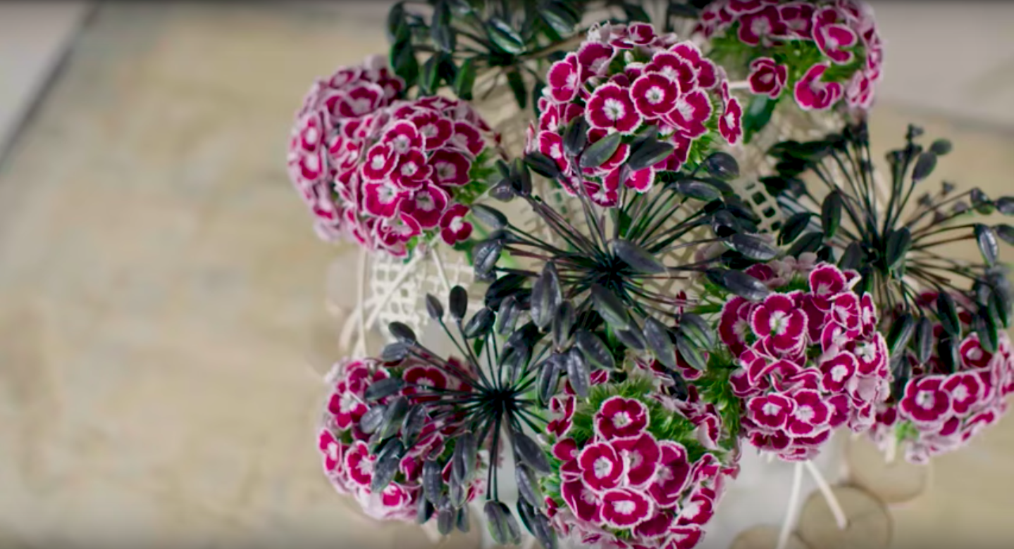 A floristry tutorial with Pim van den Akker in which he uses the Sparkz variety 'Breanthus King'. This flower is often used in mixed bouquets but is also really cool to use as main flower. Combined with the black Agapanthus it is a striking arrangement in a clever frame.