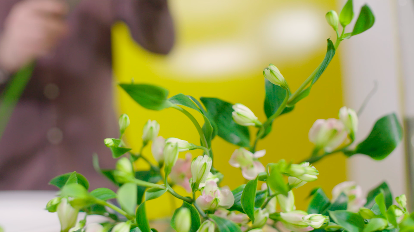A bouquet design idea by Pim van den Akker with Charmelia. Each stem of this flower is a bouquet on its own. To really show this rich floral crown in all its beauty, Pim creates an original mono bouquet with Charmelia. A bouquet that can be enjoyed for a long time; the Charmelia is a strong flower that will bloom for days, even weeks, on end!