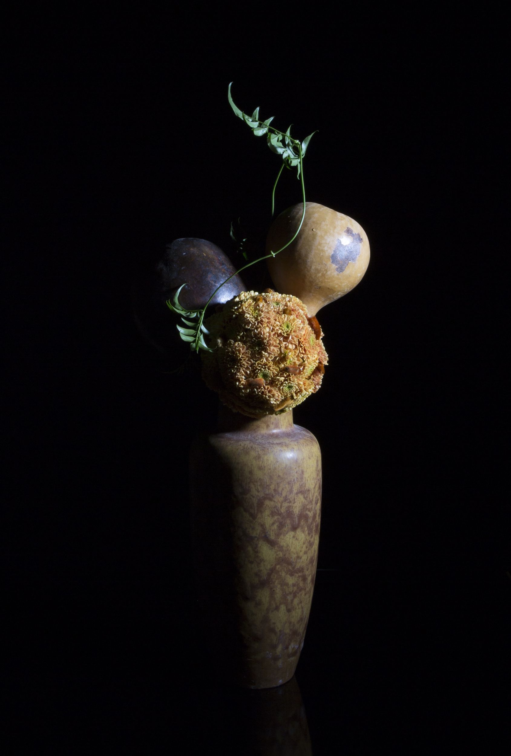 Roos van Unen has created a funeral arrangement in a vase with the Chrysant Bartoli from Zentoo. This vase arrangement shows that funeral arrangements do not always have to be in the form of coffin decorations. Funeral arrangements can also be a serene still life, presented in a beautiful vase.