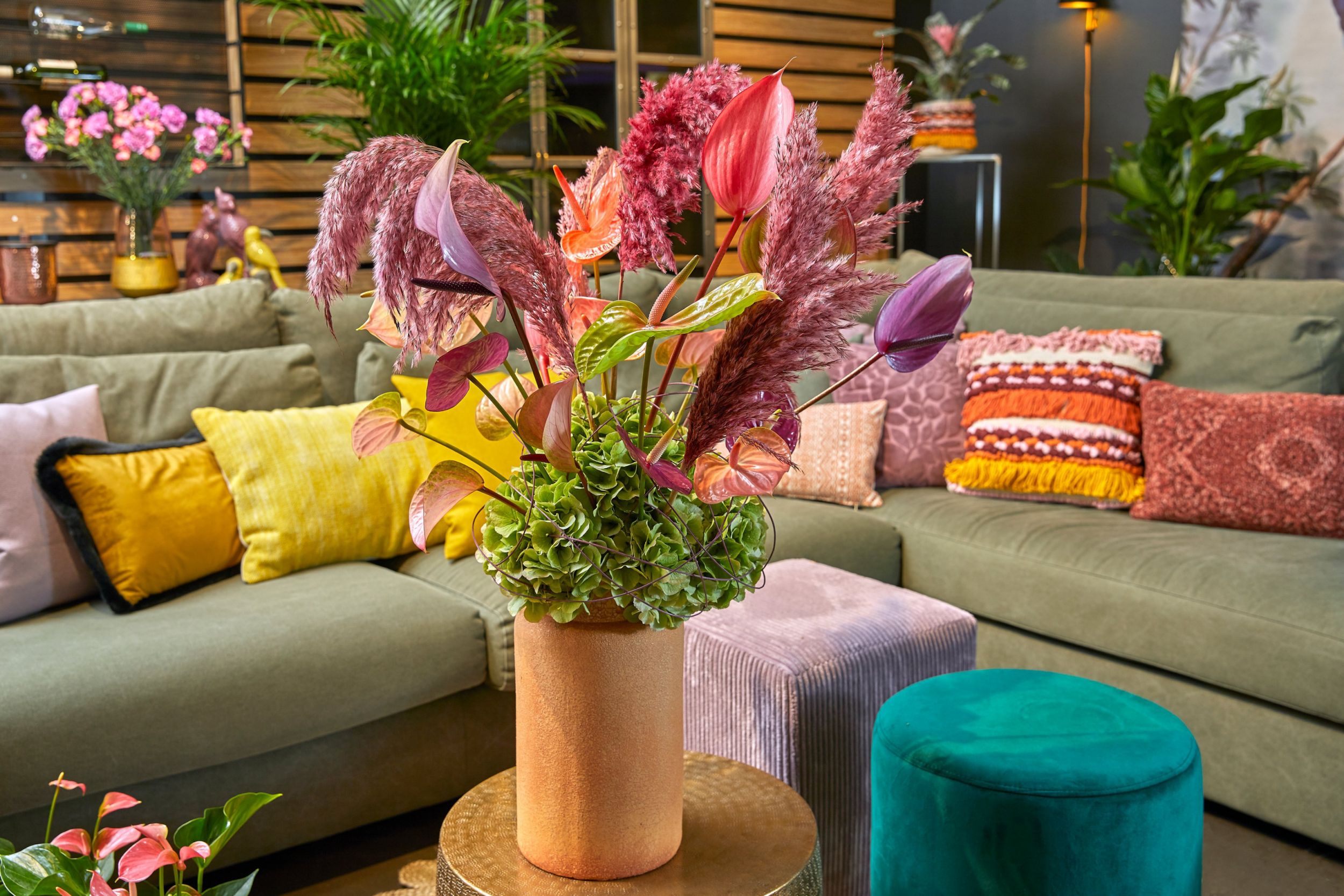 The Anthurium has a striking appearance with her special colours, shine and extraordinary shape. Both cut Anthuriums, as well as potted Anthuriums, give your interior an edgy twist. The cut Anthurium shines in a 'tough' interior and steals the show in a 'cosy' interior. The versatile flowers work well in all three interior styles.