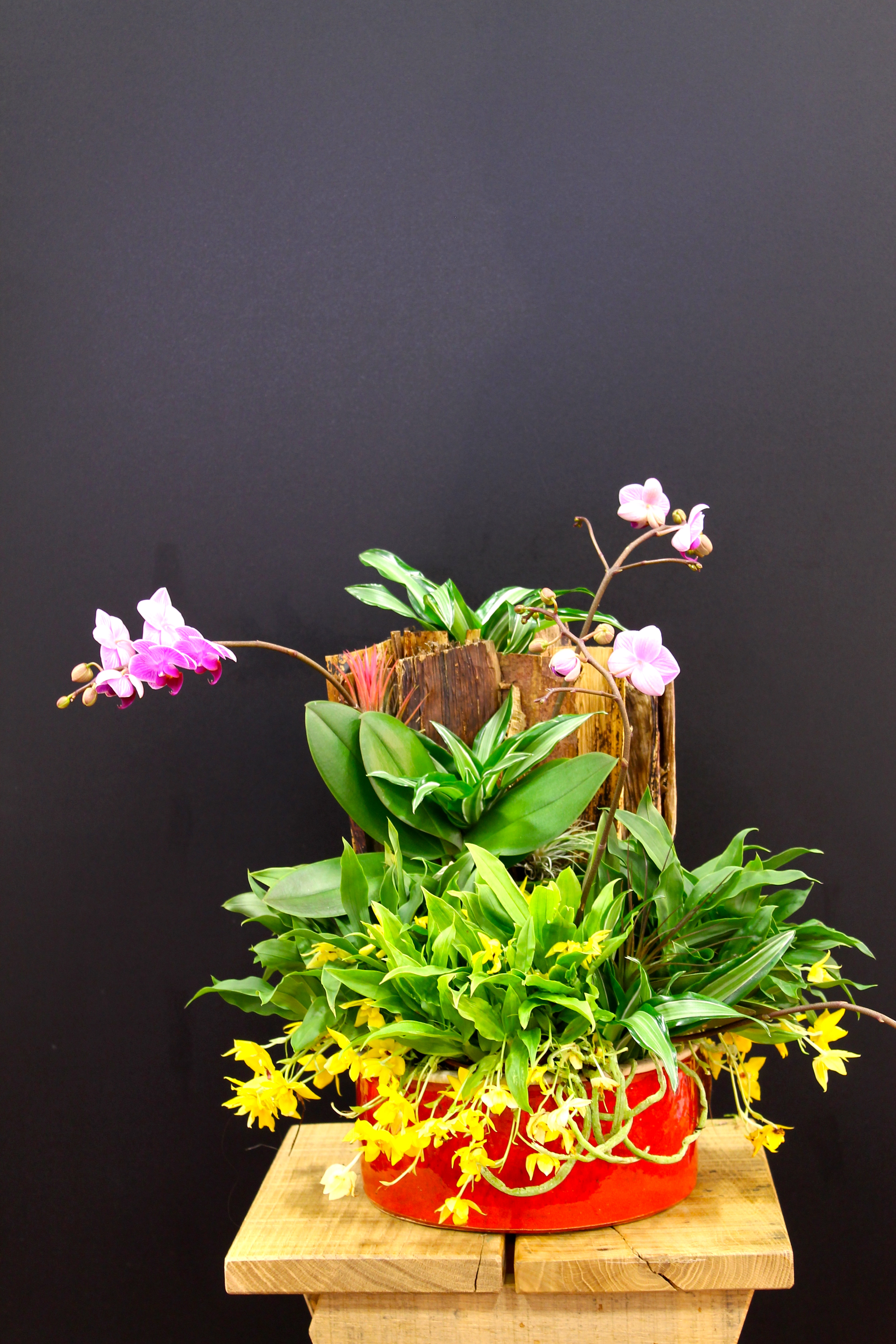 Plant arrangement by Inge Quint, created at Flower Factor's mini Floral TweetJam, during the 2nd Florist Event at Royal FloraHolland's Seasonal Trade Fair 2016.