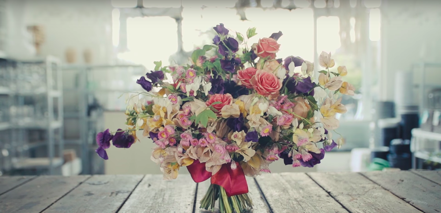 Giada Graziani from Don Florito. Giada won the Dutch Wedding Awards twice. She creates a hand tied wedding bouquet in Baroque style. A wedding bouquet with beautiful colours. She uses different ingredients like Stromante, Kalanchoe, Bougainvillea, Dicentra, Lathyrus and different varieties of Roses.
