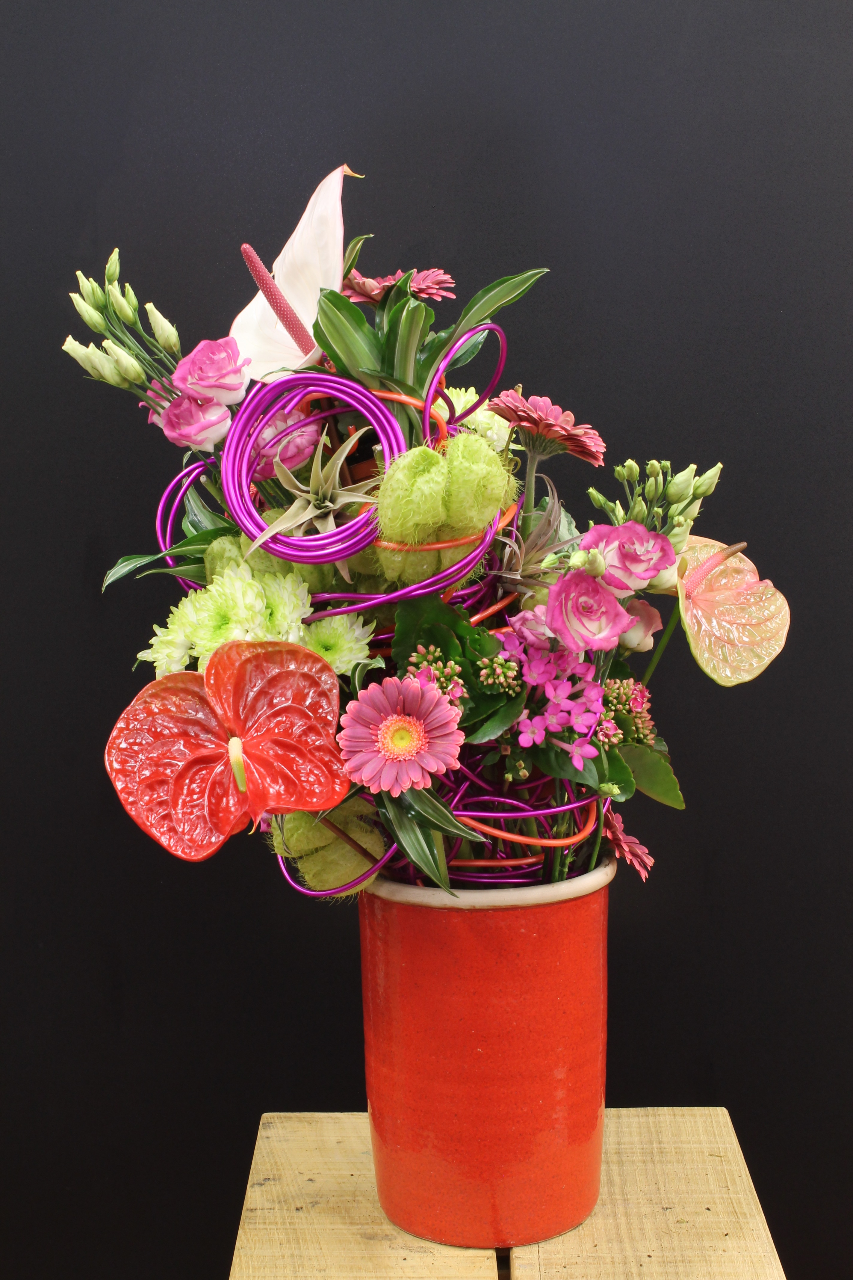 Colorful bouquet created by Dutch floral designer Sarah Dikker at Flower Factor's mini Floral TweetJam, during the 2nd Florist Event at Royal FloraHolland's Seasonal Trade Fair 2016.