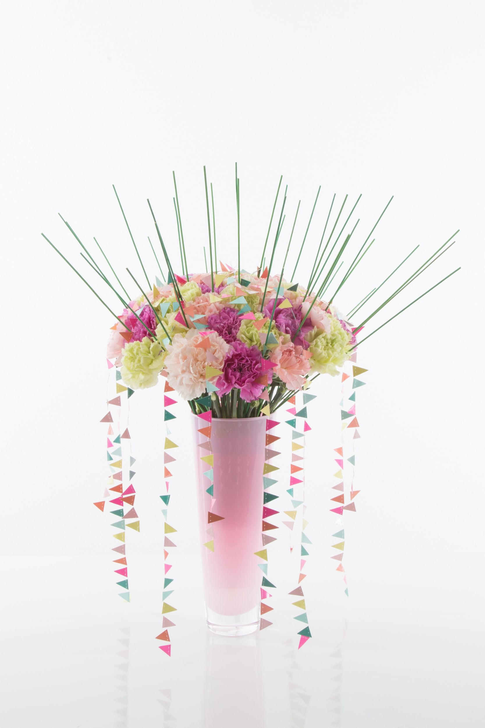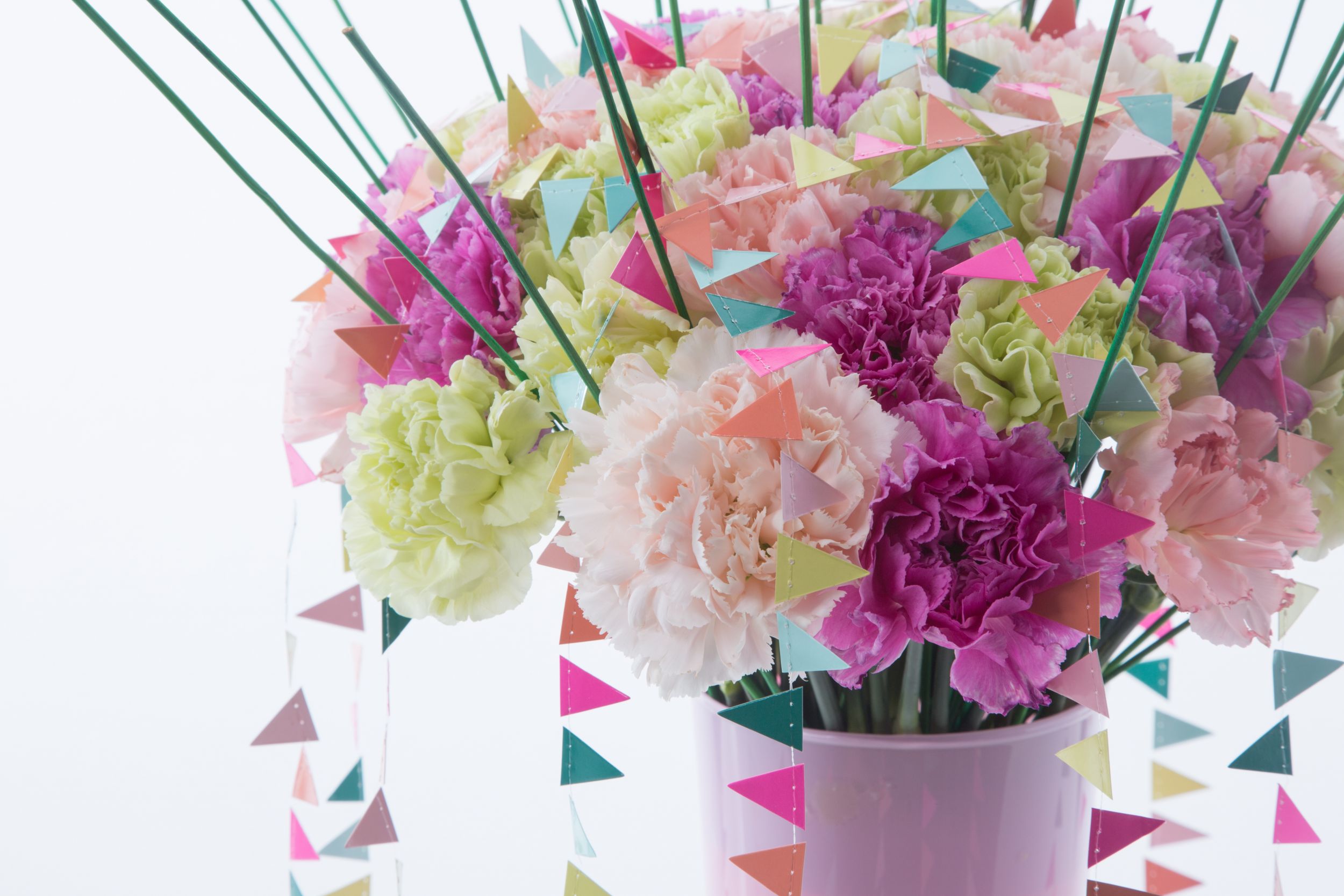 Alex Segura Arana shared a fun design idea with carnations during the live stream on Facebook. How festive is that? Lovely bright colours and cute details. Easy to make and it will put a big smile on everyone's face! The smaller versions are made with pink Oasis Rainbow Floral Foam which gives a fun detail.