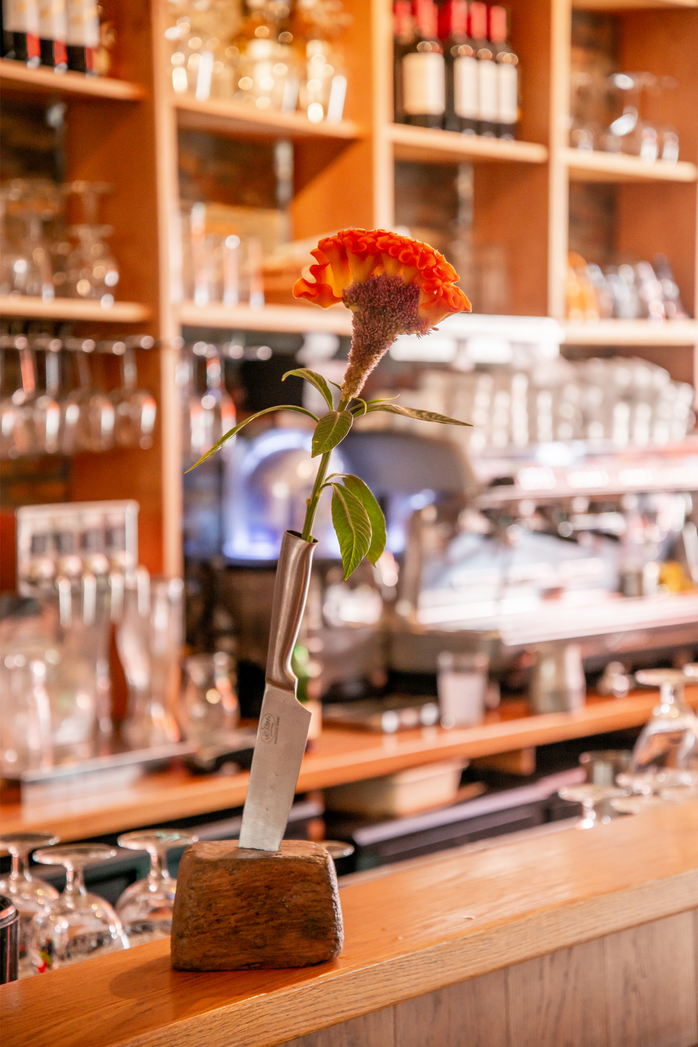 How to create original flower table decorations for hospitality businesses? One idea is to use objects like this: Pim van den Akker turned a knife into a vase, bringing a real conversation piece to the table!