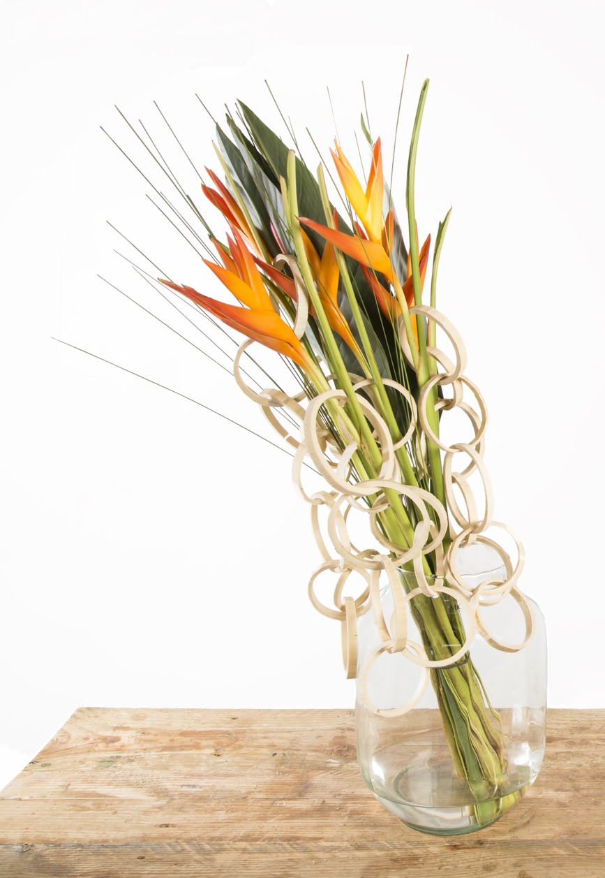 Heliconia bouquet in frame of bamboo rings's en bamboe ringen
