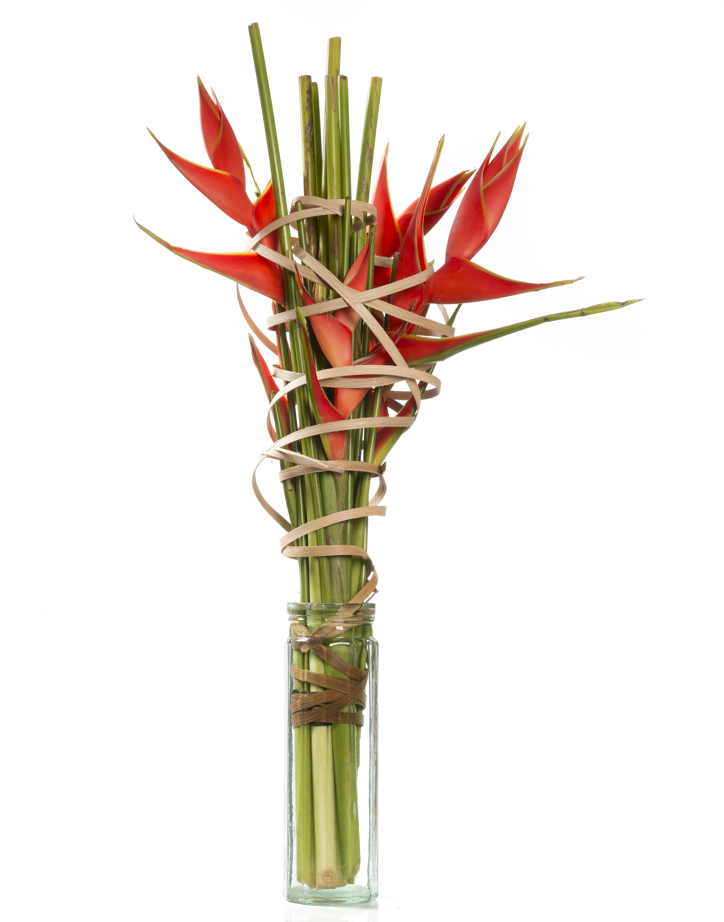 Heliconia bouquet wrapped in flatcane