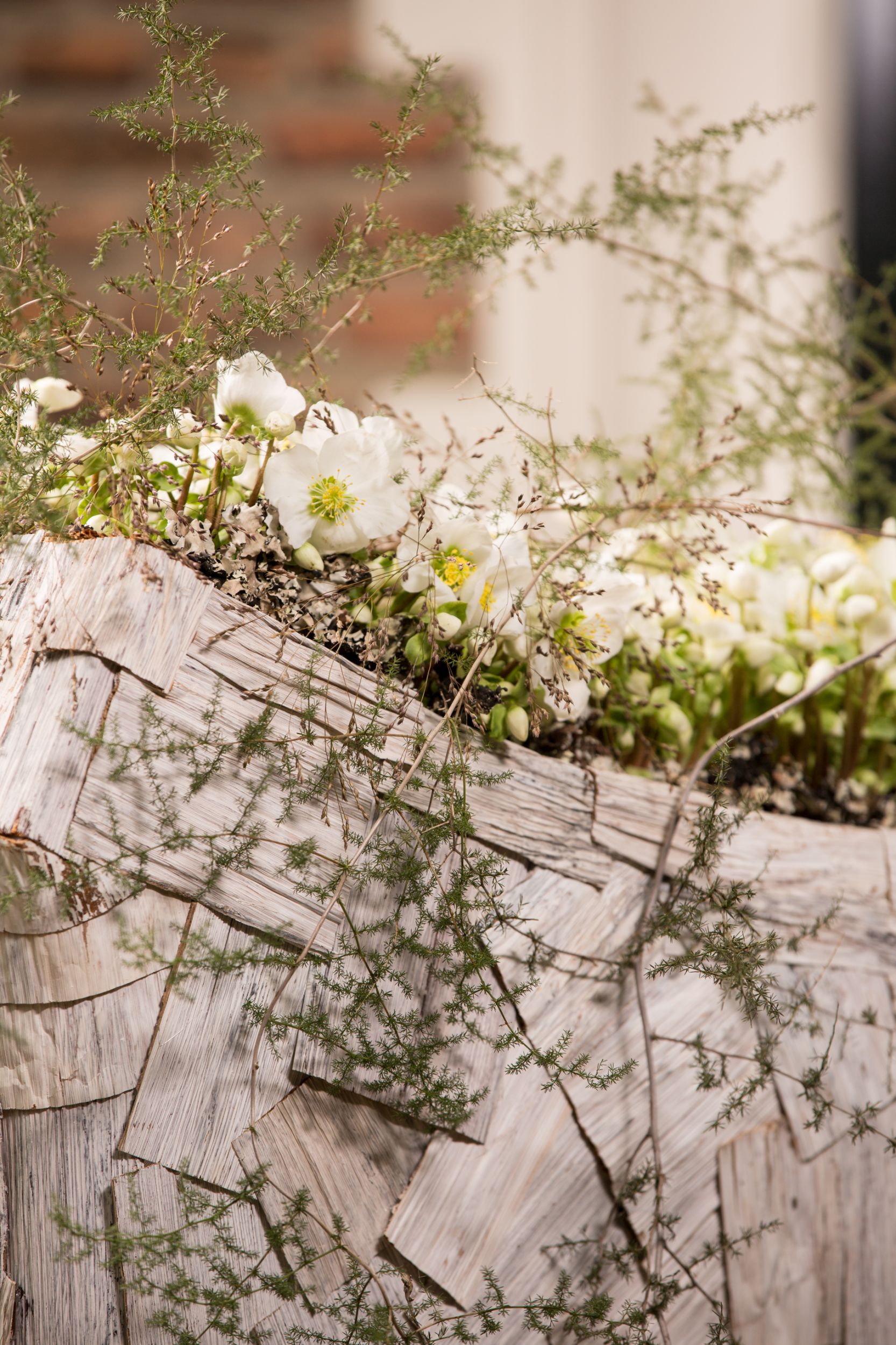 The 'Verboom Beauty' Hellebore from Kwekerij Verboom stays true her name: a real beauty! This beautiful winter plant shines in this special, luxurious and wintery design made by Pim van den Akker. The many white flowers, the shape and movement give an icy and wintery look. A design suitable for events. The Hellebore 'Verboom Beauty' can be placed inside, but also loves the cold as long as there is no frost! This design can be placed outside as well.