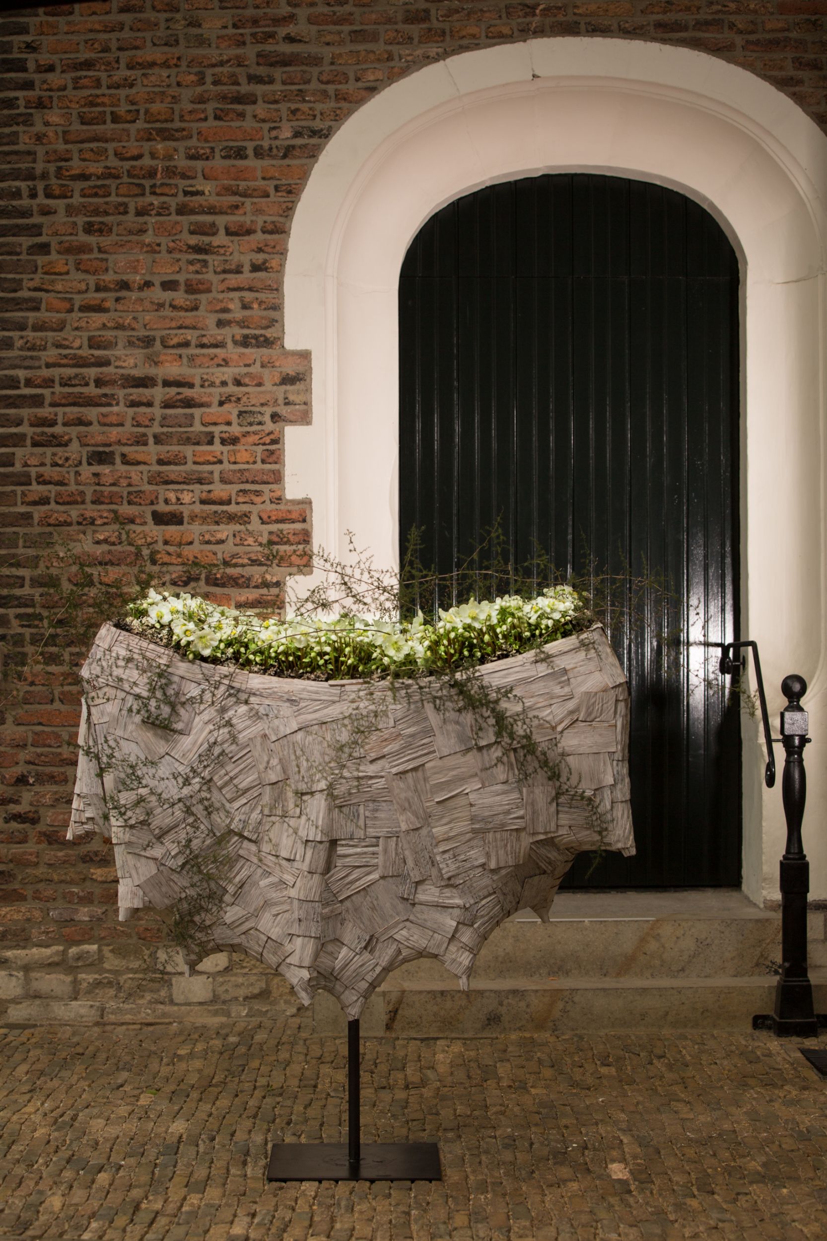 The 'Verboom Beauty' Hellebore from Kwekerij Verboom stays true her name: a real beauty! This beautiful winter plant shines in this special, luxurious and wintery design made by Pim van den Akker. The many white flowers, the shape and movement give an icy and wintery look. A design suitable for events. The Hellebore 'Verboom Beauty' can be placed inside, but also loves the cold as long as there is no frost! This design can be placed outside as well.