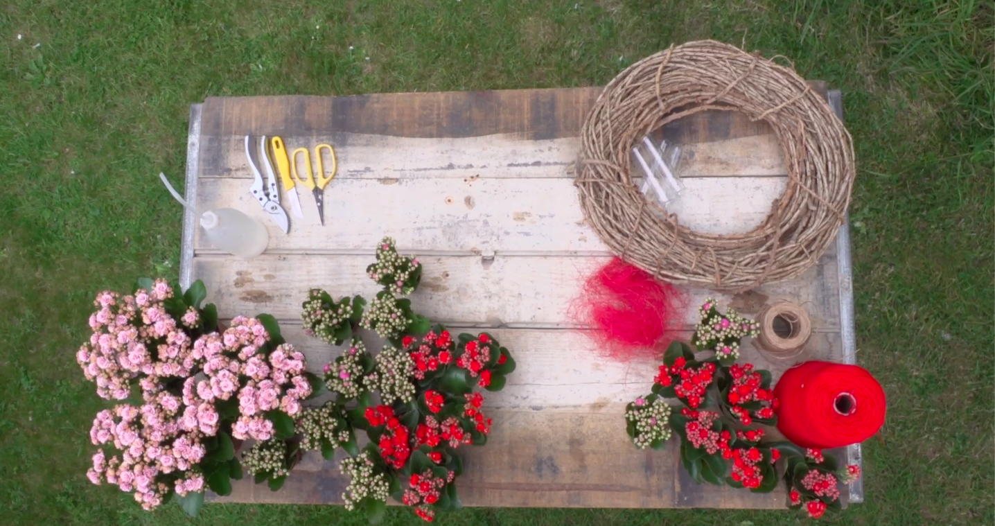 Memorial wreath with Kalanchoë