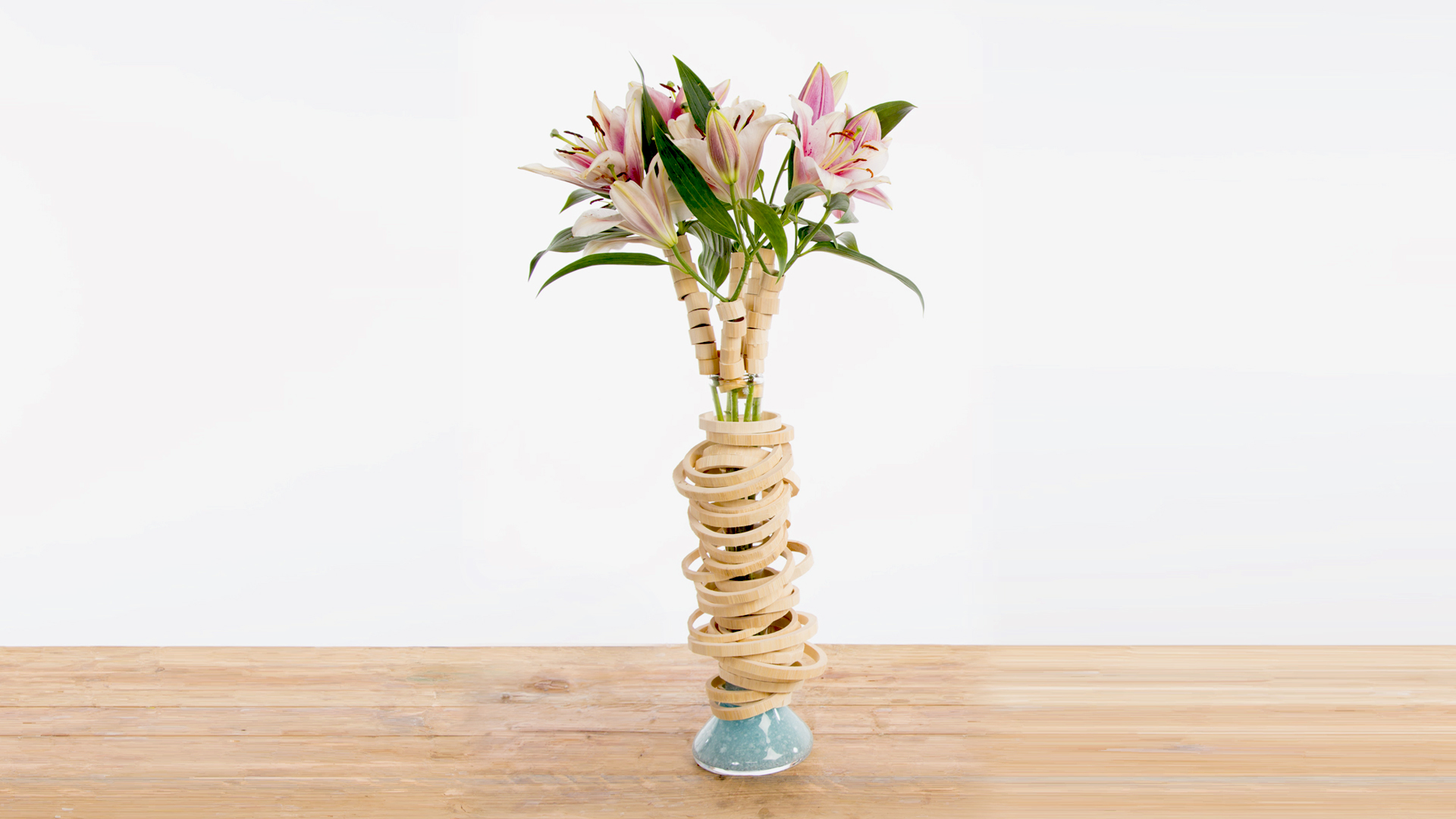 Vase design with lilies and bamboo rings